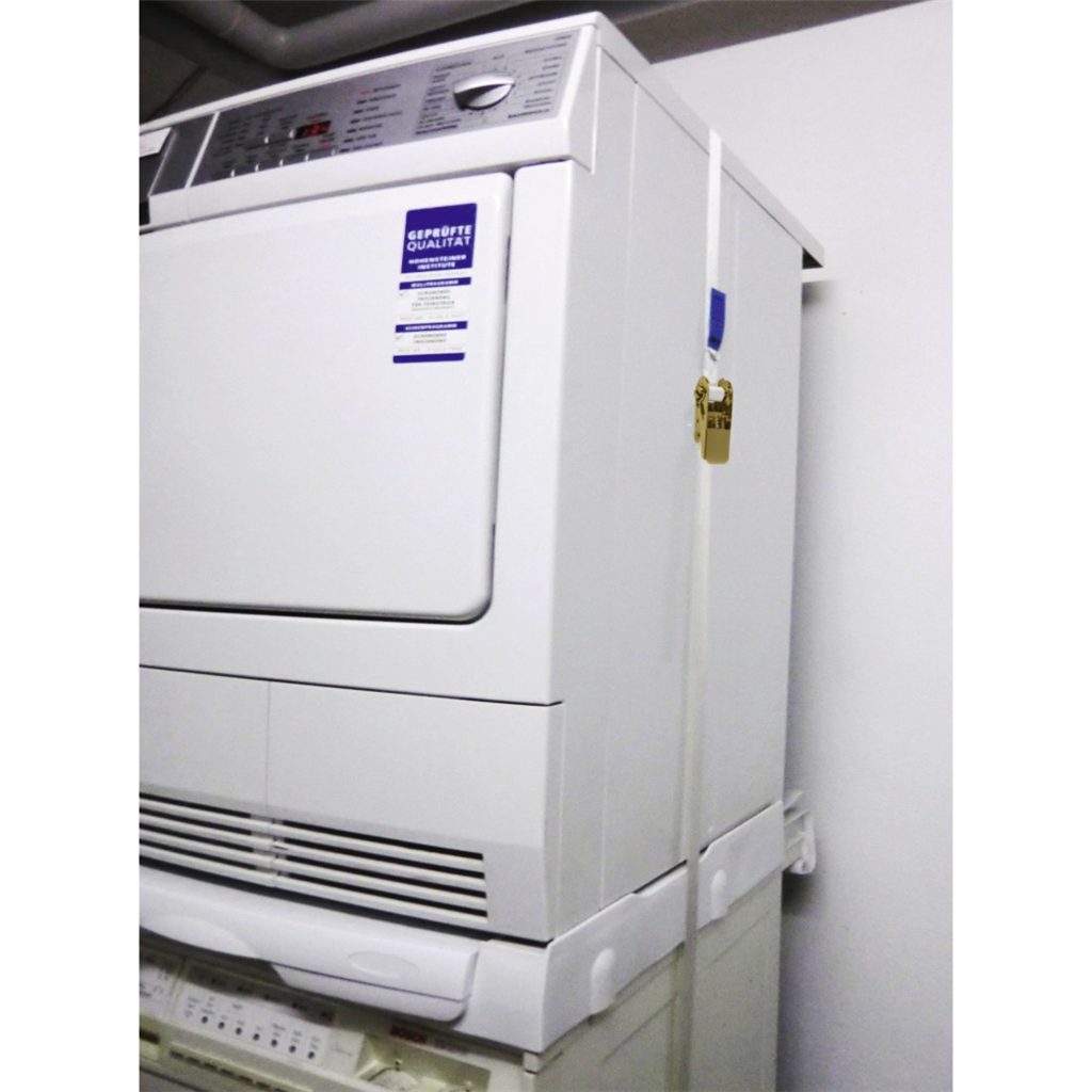 - For the additional securing of laundry dryers that are operated on top of washing machines