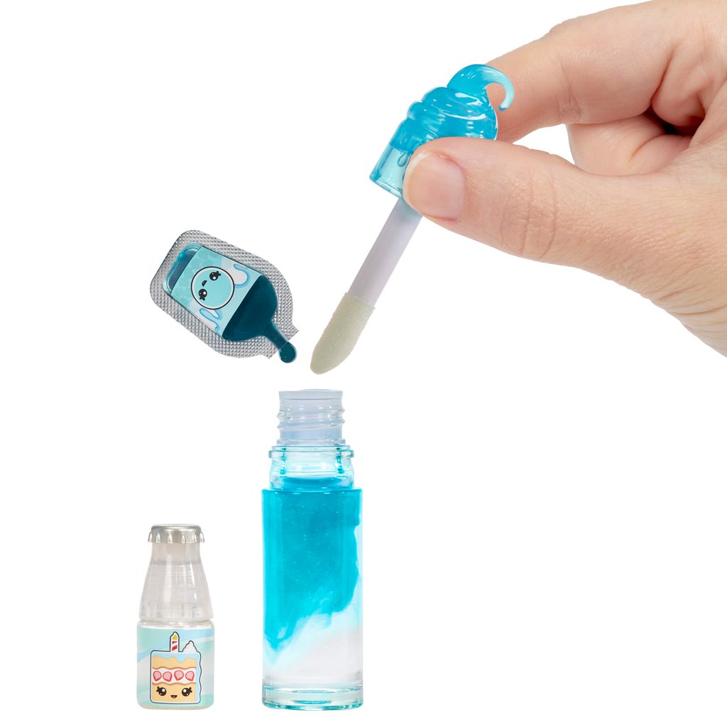 Vyrob si svůj vlastní lesk na rty s roztomilou panenkou. 1. Otevři tubu s leskem na rty. 2. Přidej do tuby vůni z lahvičky na limonádu. 3. Přidej barvu z kelímku na Bubble tea. 4. Tubu s leskem zavři a pořádně ji protřepej. V sérii můžeš vybírat z 6 vůní a vytvořit více než 50 kombinací. Roztomilá voňavá panenka má outfit a boty, které můžeš sundat. Panenku i lesk na rty si můžeš vzít na cesty, stačí spojit s přívěskem na klíče.