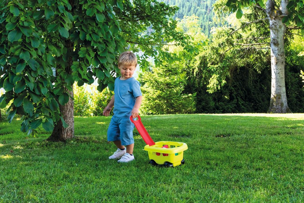 Ruční zahradní vozík s příslušenstvím v kyblíčku. S kyblíčkem na písek, sítem, konvičkou, lopatkou, hrabičkami a formičkou na písek. Vozík se snadno ovládá díky praktickému táhlu. Rozměry produktu (DxŠxV): 31 x 19 x 17,5 cm.