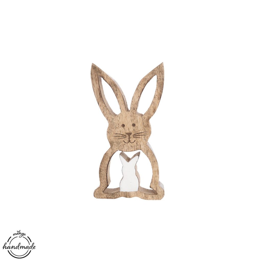 Dekorace ve tvaru zajíčka ozdobí vaši domácnost nejen v době Velikonoc, využít ji můžete po celý rok. Vhodná také jako dárek. Materiál: dekorativní mangové dřevo. Rozměry: 6x2,2x12 cm.