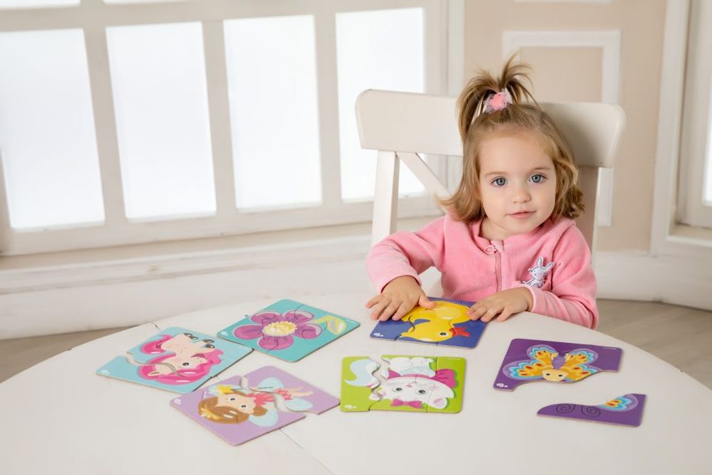 7 obrázků, 18 ks První puzzle pro batolata, 18 ks. Barevné obrázky a speciální klikaté stříhání dodávají hře více zábavy. Tato hračka rozvíjí logiku, motoriku, kreativitu a koordinaci ruky a oka. Doporučeno pro děti 1+.