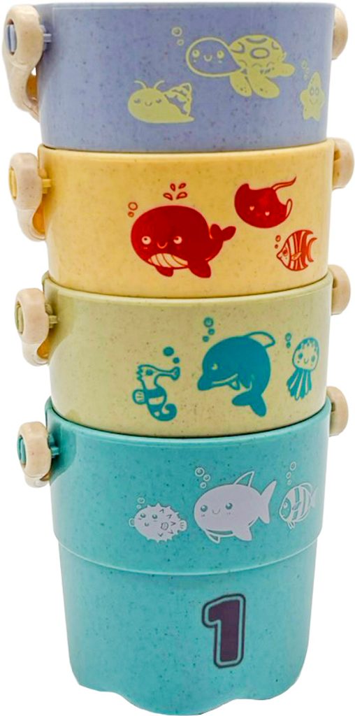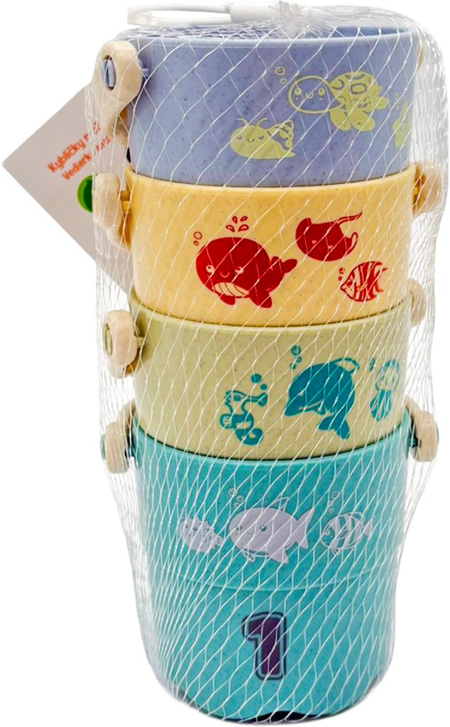 Sada roztomilých kyblíčků ve veselých barvách nesmí chybět v žádné dětské vaničce. Můžete je vzít s sebou na pláž nebo na pískoviště.