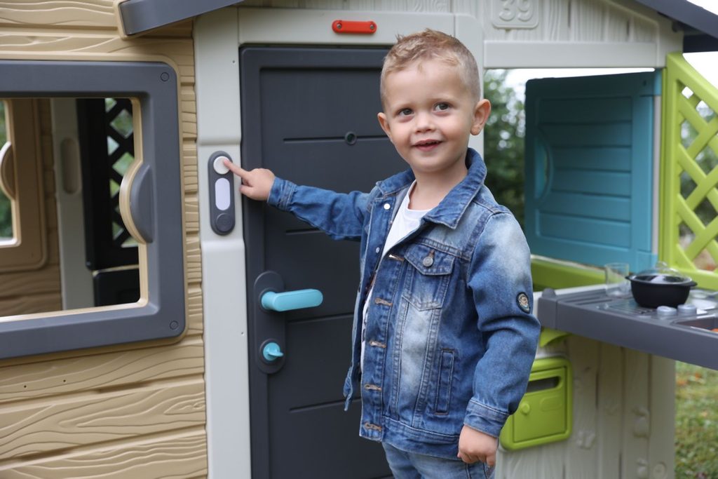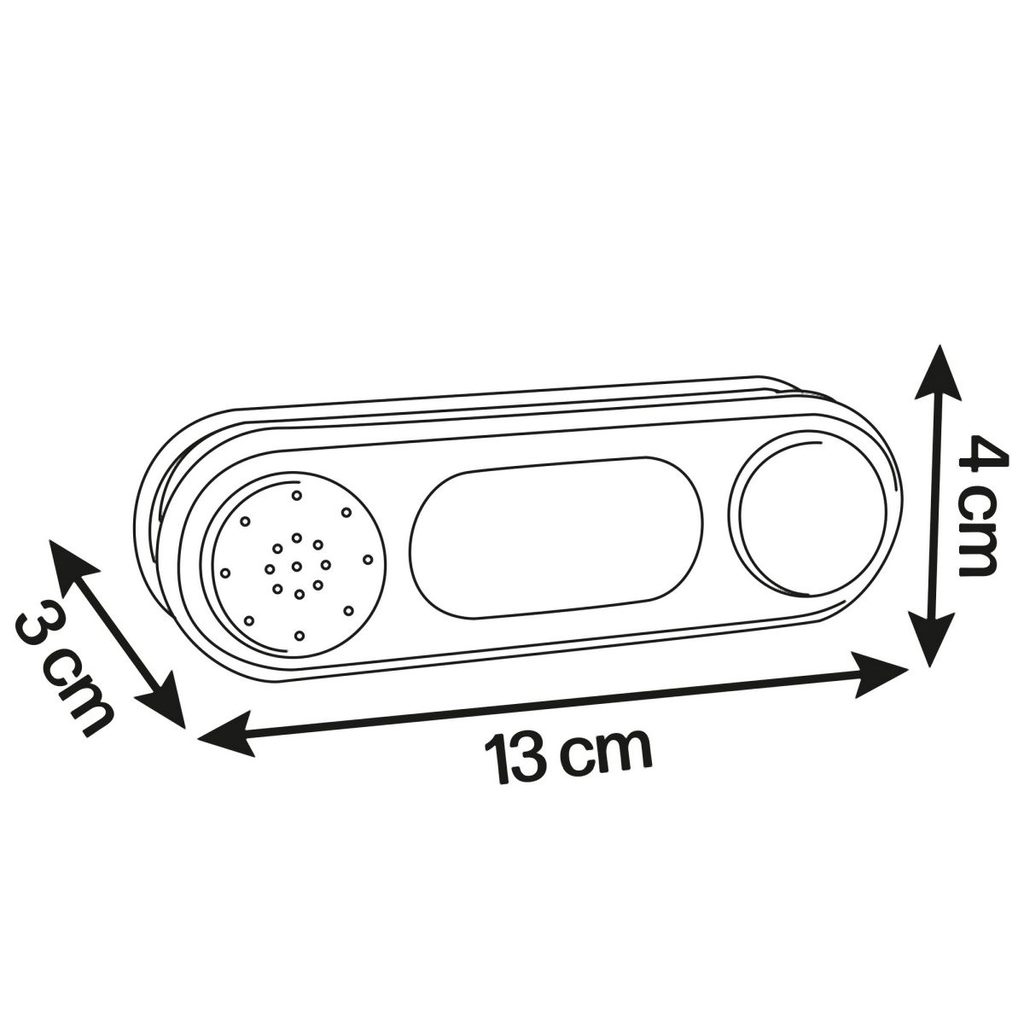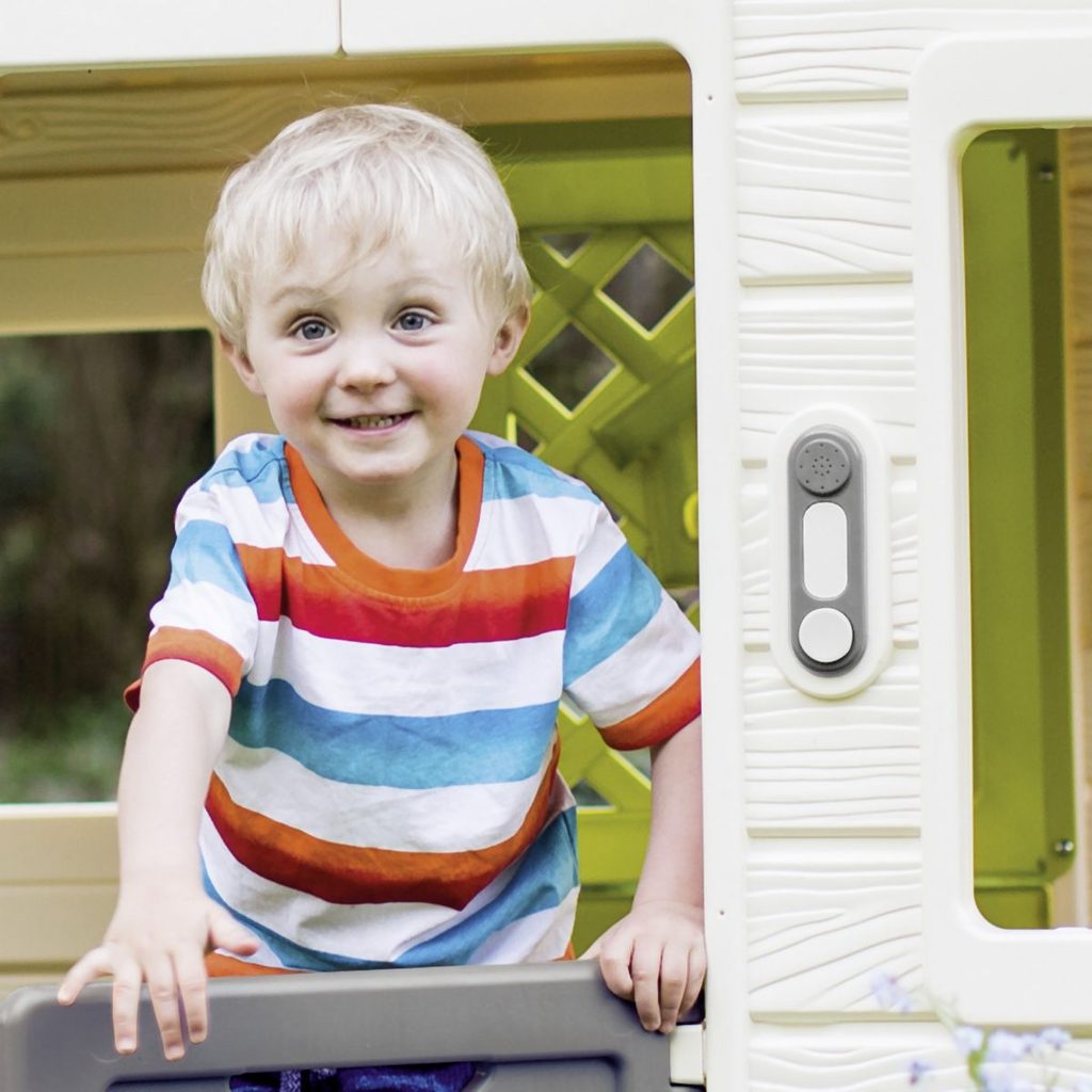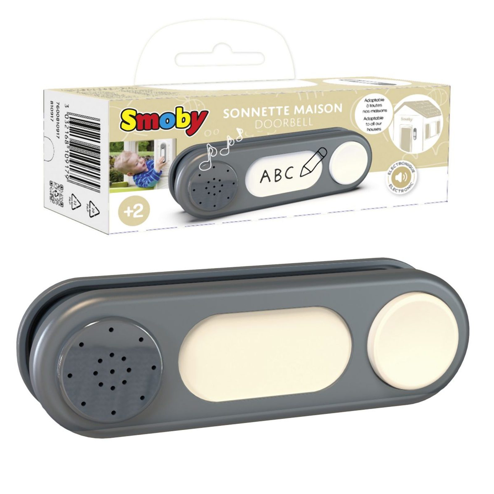 Elektronický zvonek se skutečným zvukem zvonku jako doplněk pro zahradní domečky Smoby: Pretty, Nature, domečky na podestě, Neo Jura Lodge rozšiřitelný, My Neo House rozšiřitelný, Neo Friends House rozšiřitelný, zahradnický rozšiřitelný a Chef rozšiřitelný. Rozměry zvonku (DxŠxV): 13 x 4 x 3 cm.